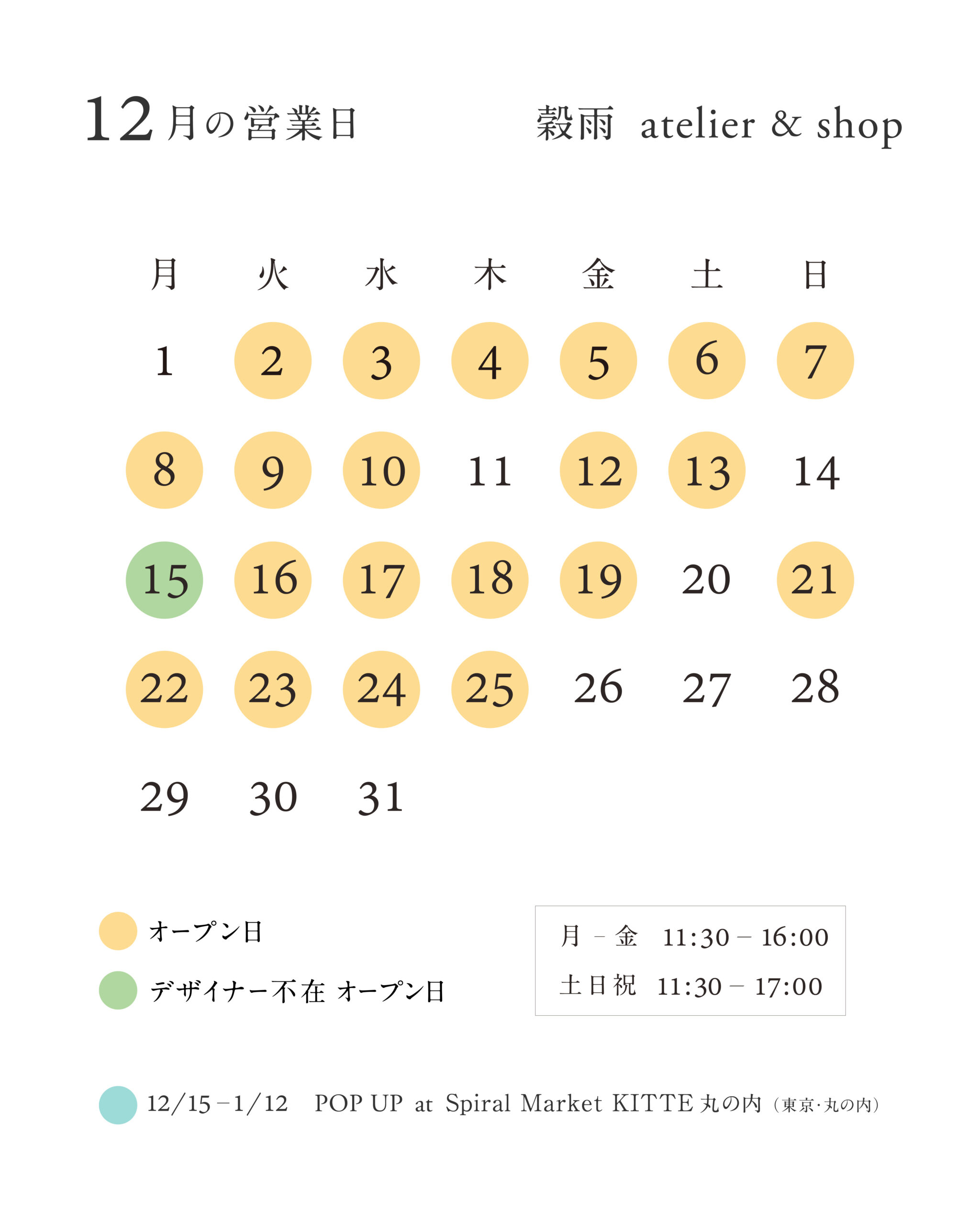 NEWS 庭師の夢リング受注会 @ 名古屋 Fuligo 2026年3月4日 穀雨個展「時をつむぐ庭園」@名古屋 Fuligo 2026年3月4日 <3月の営業日> 2026年2月25日 価格改定のお知らせ 2026年2月10日 穀雨 POP UP & リング受注会 @仙台 2026年1月27日 <2月の営業日> 2026年1月22日