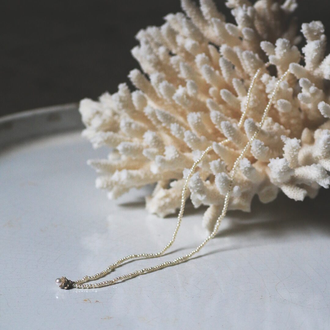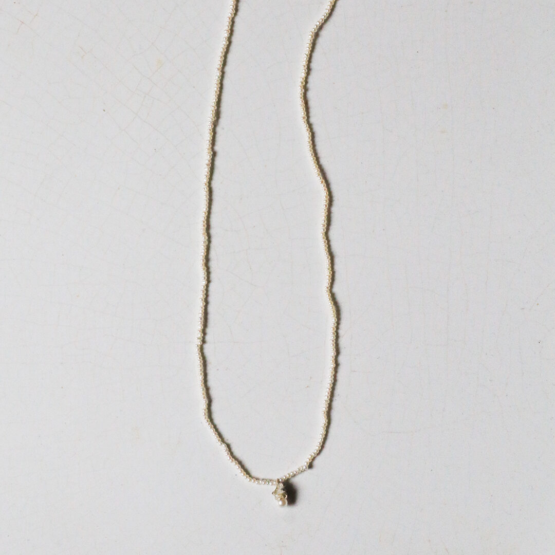1mmちょっとしかない極小の淡水パールネックレスに