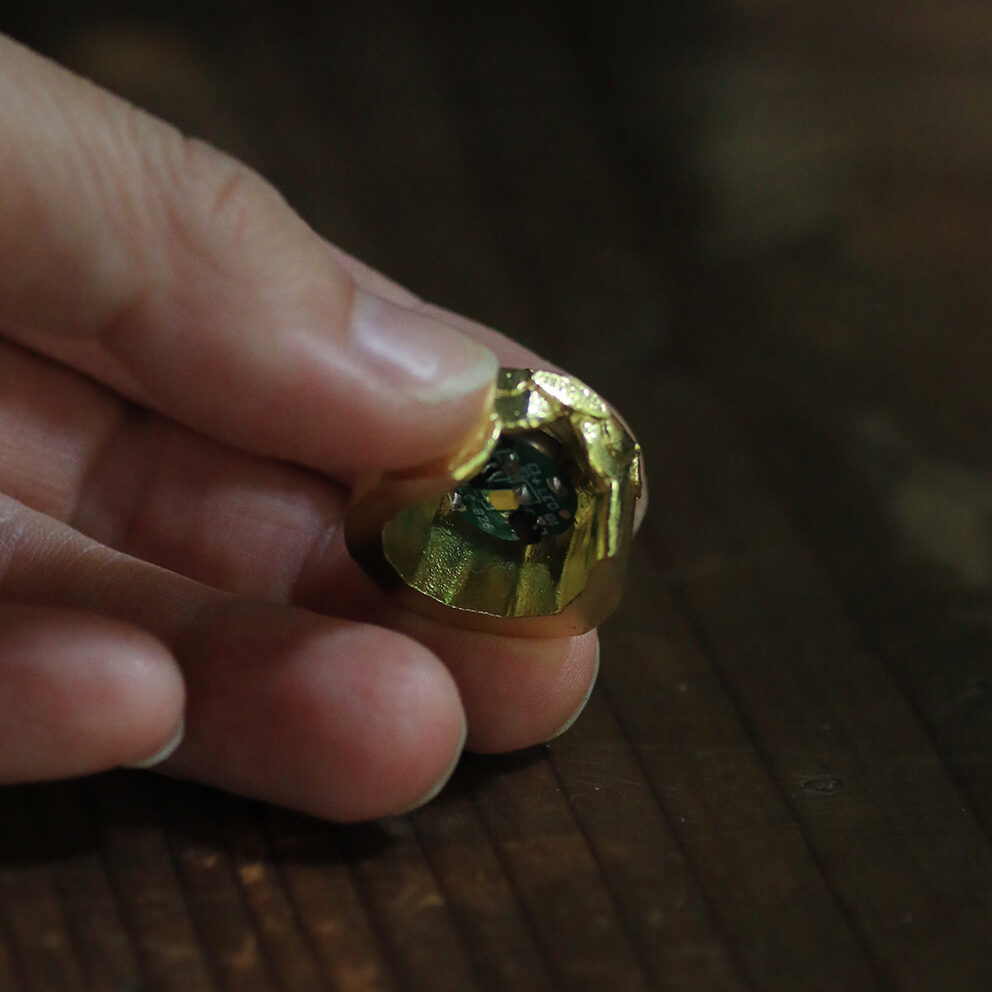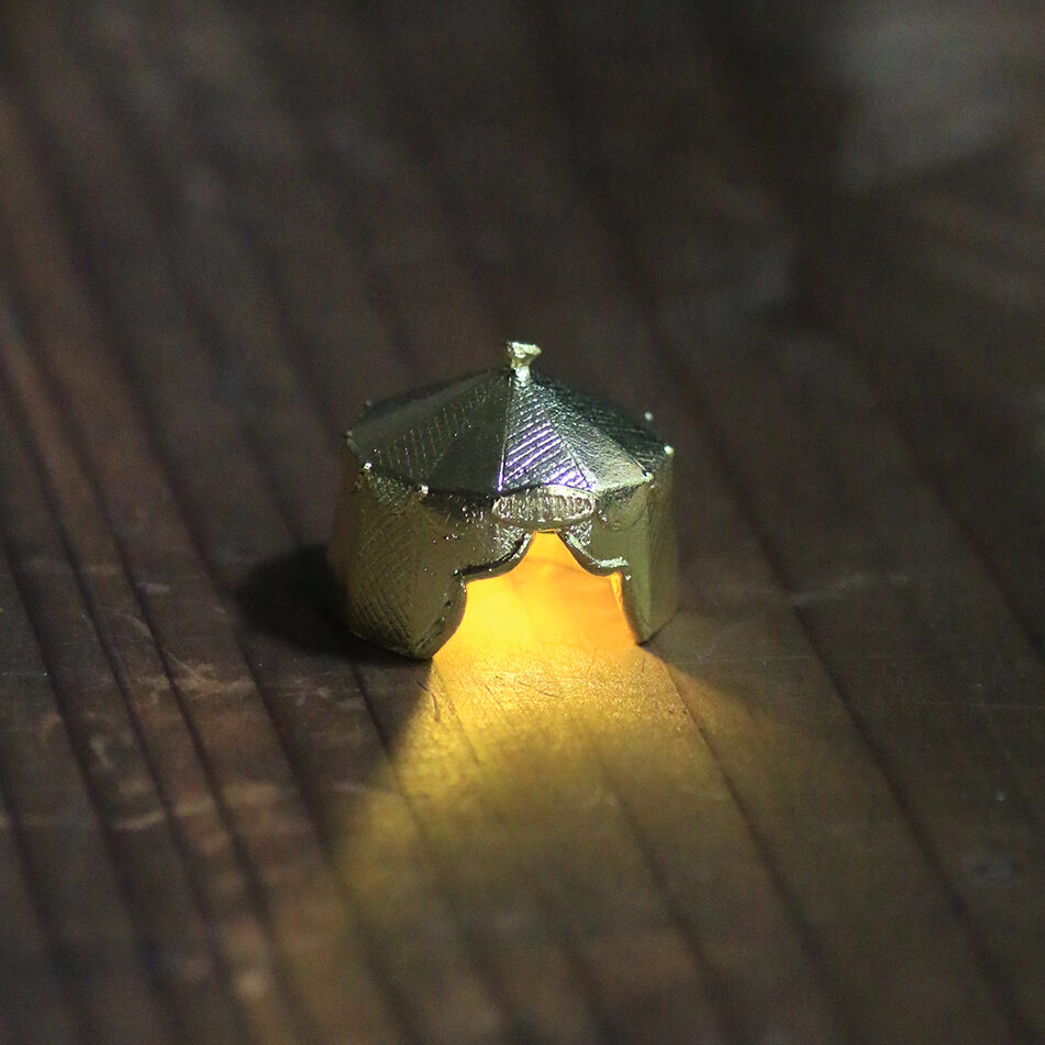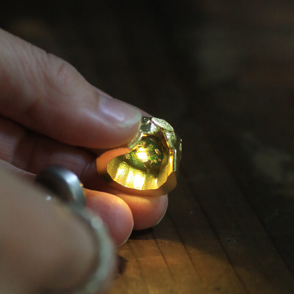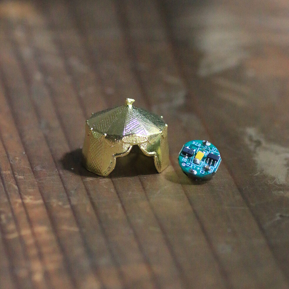 小さなオブジェの中に明かりがふわりと灯ると