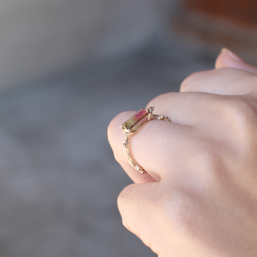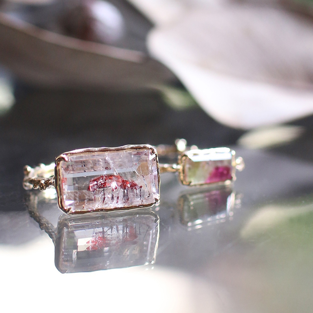 想像させる石を1つずつ集めてリングに仕立てています。