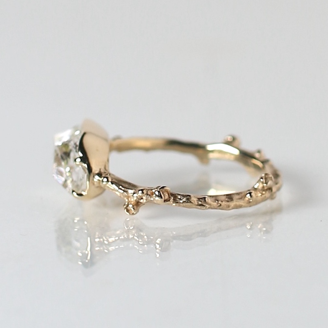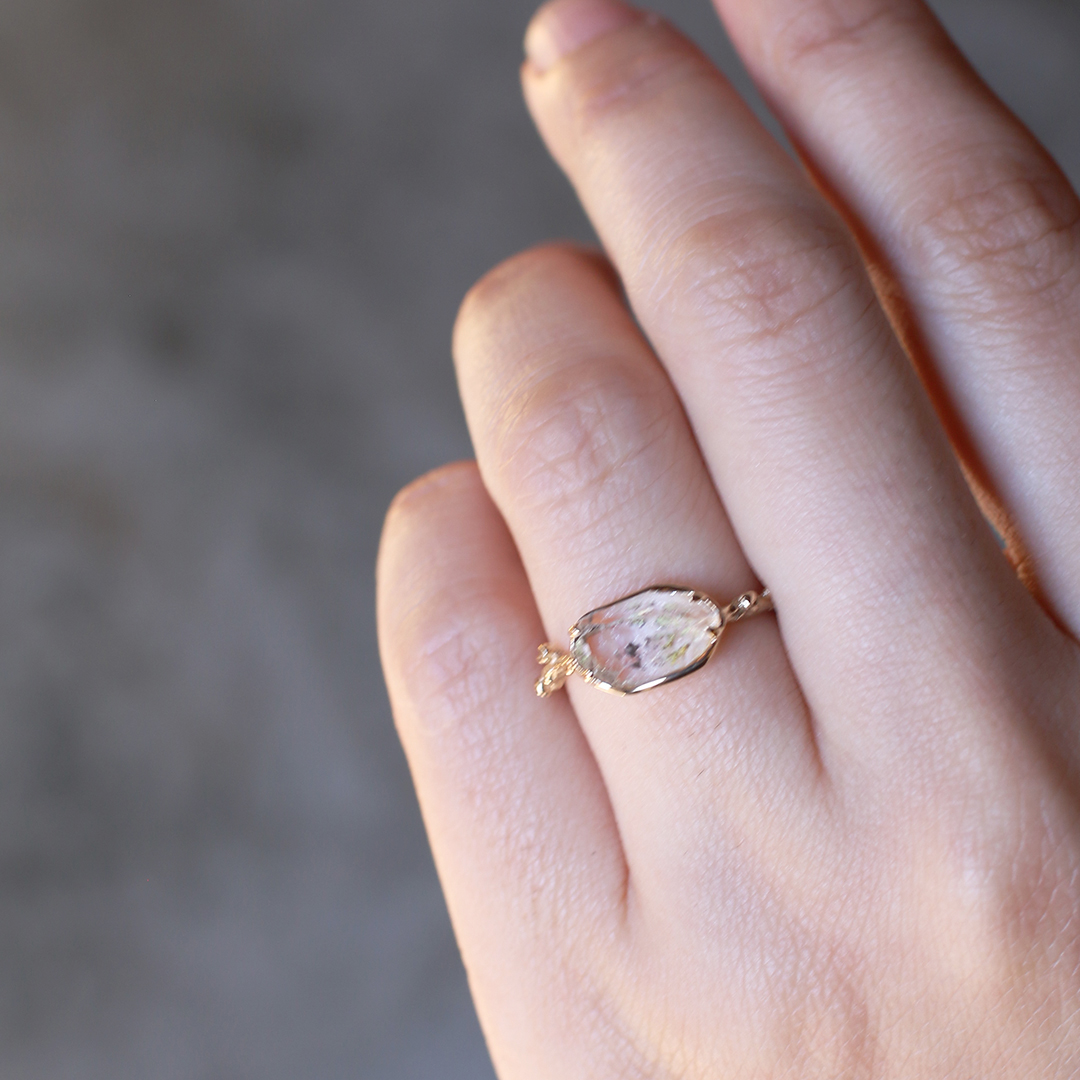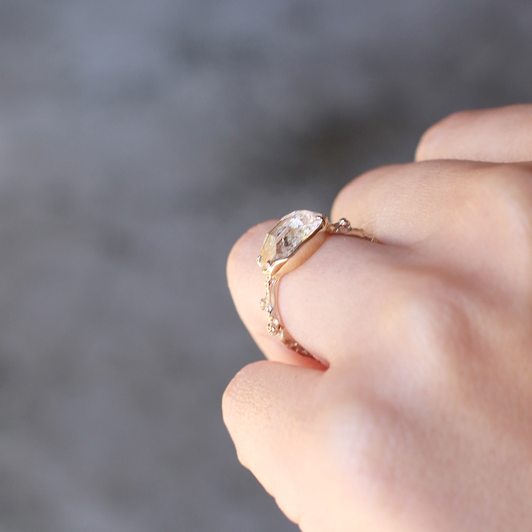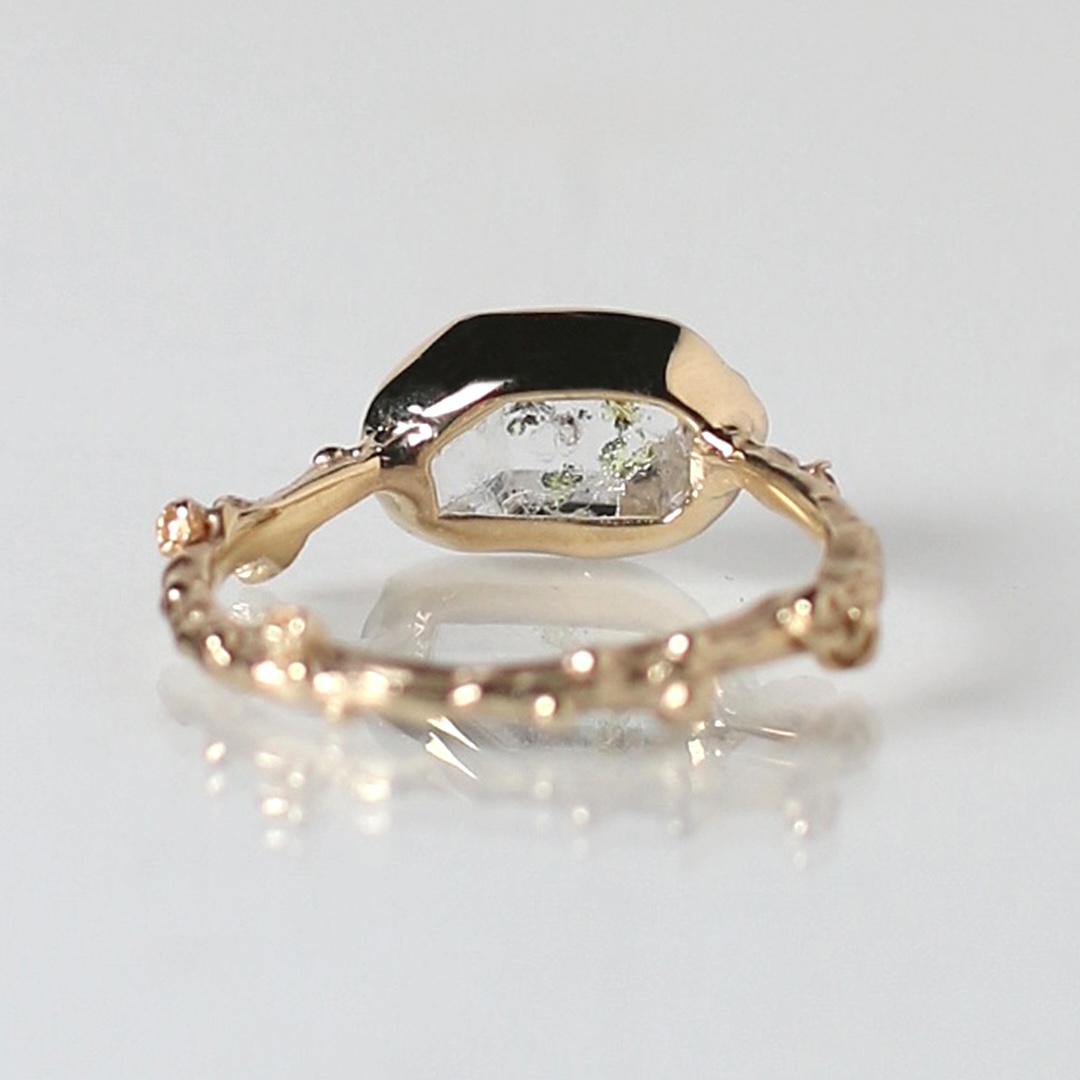 リングの腕部分は植物デザインで、