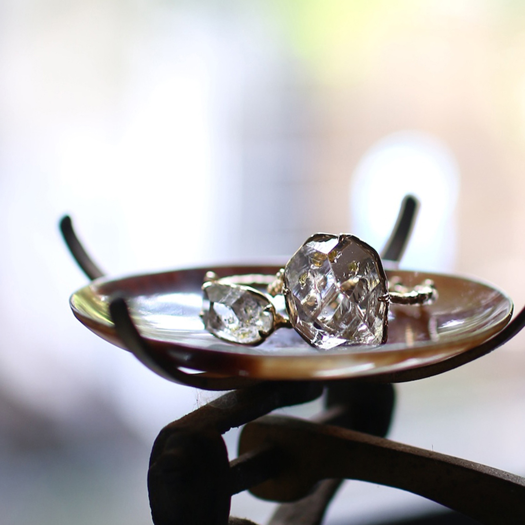 想像させる石を1つずつ集めてリングに仕立てています。