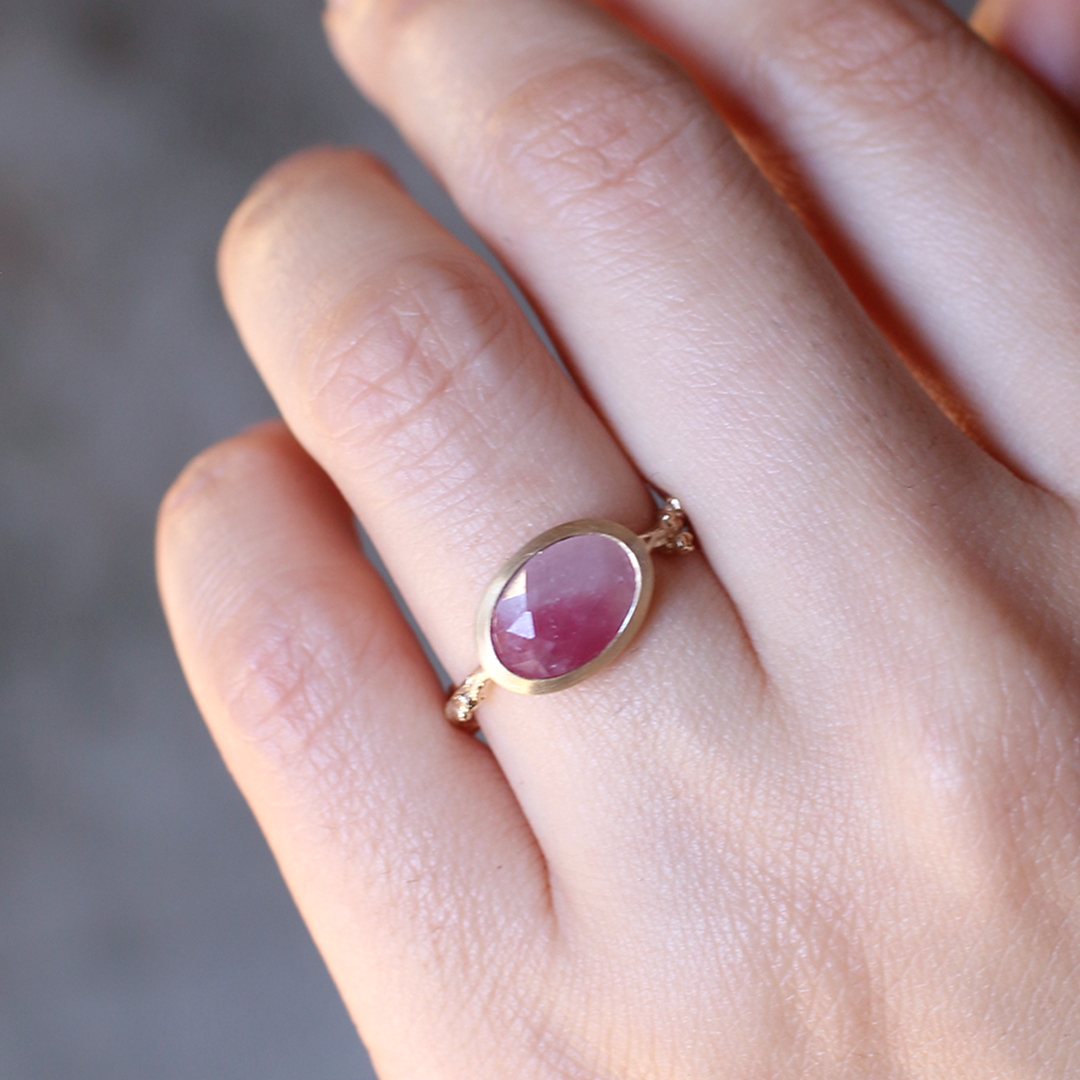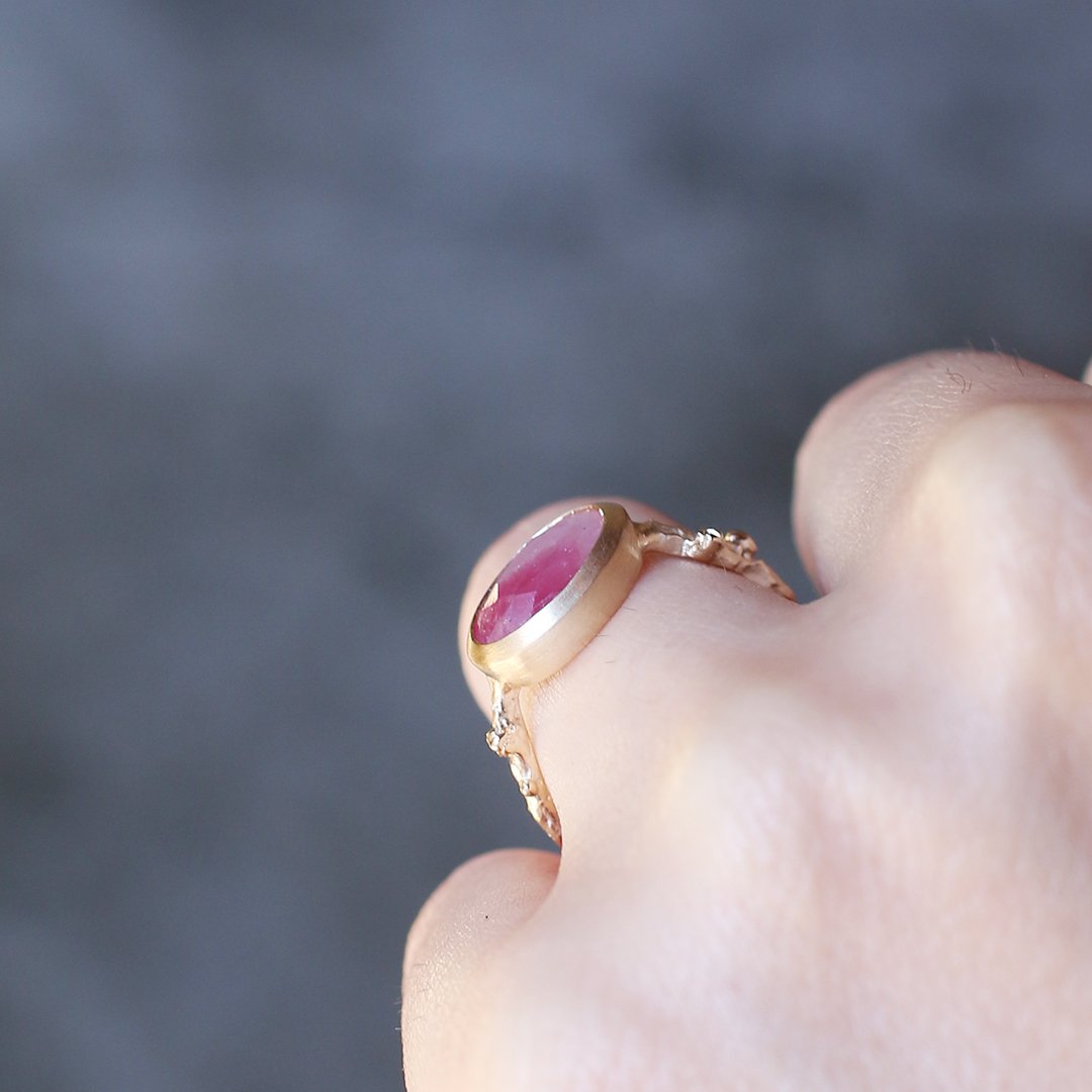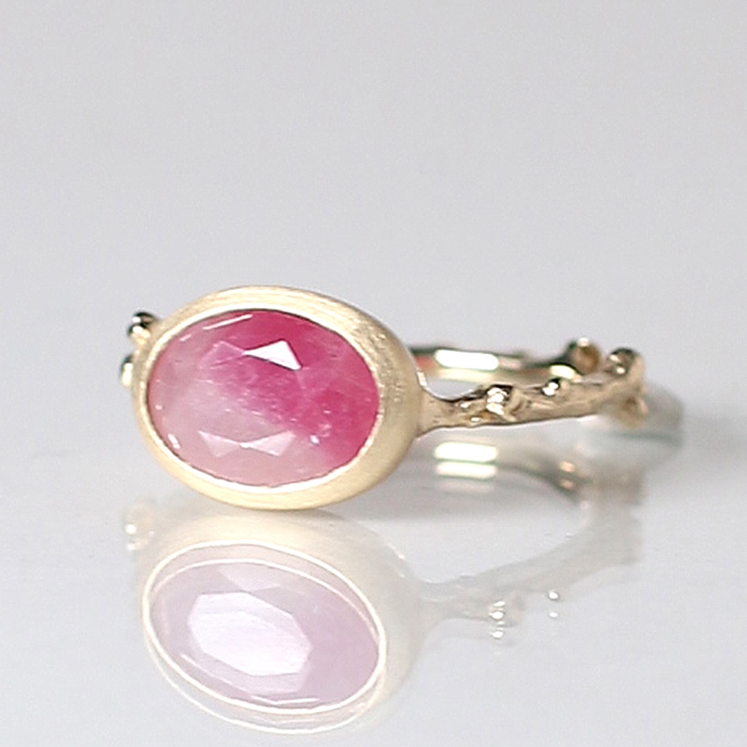 リング腕の部分の植物ラインとの対比が印象的な仕上がりです。