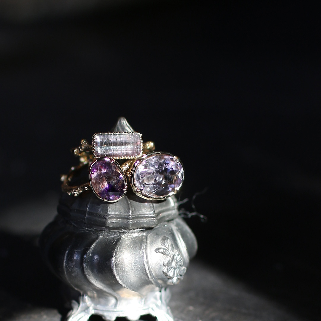 想像させる石を1つずつ集めてリングに仕立てています。