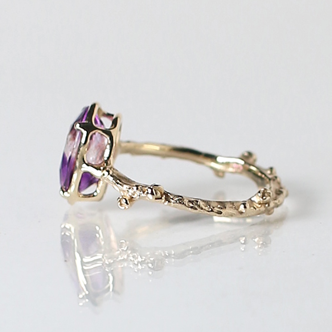 リングの腕部分は植物デザインで、
