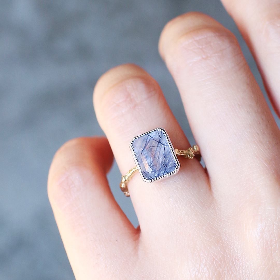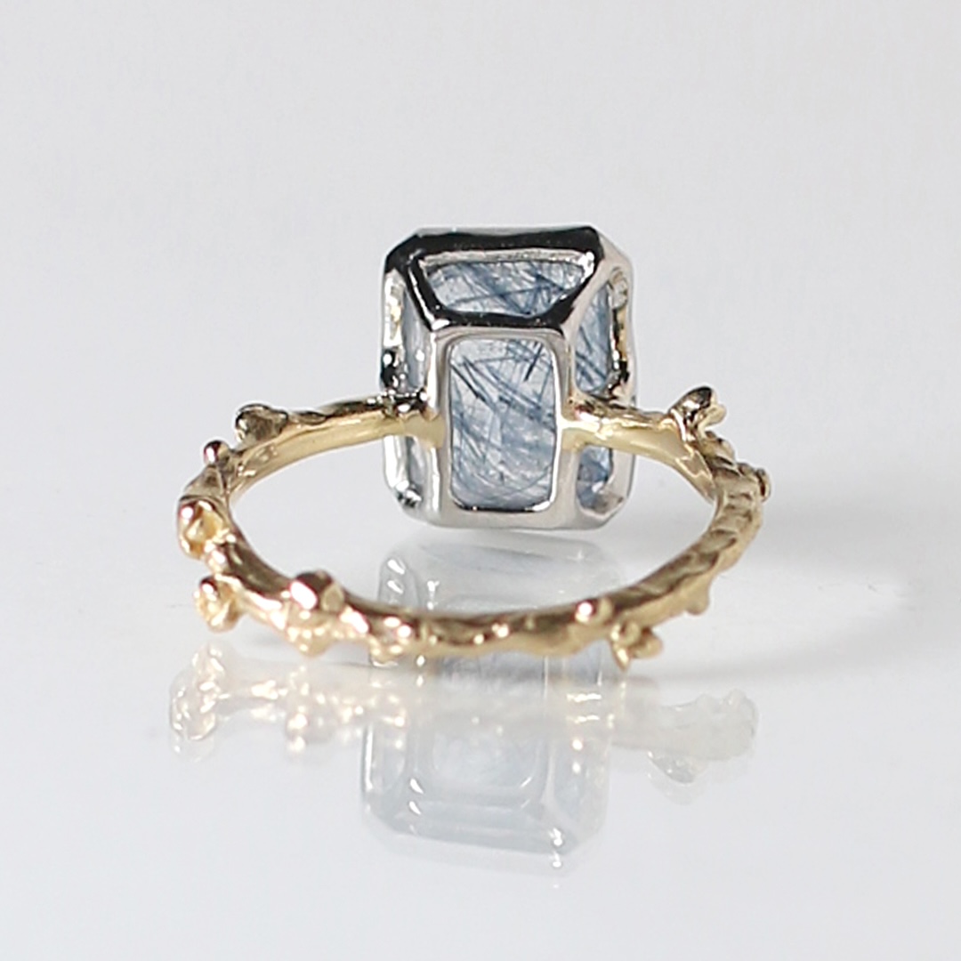 石枠:Pt900、リング腕:K18YG、ブルートルマリンインクォーツ