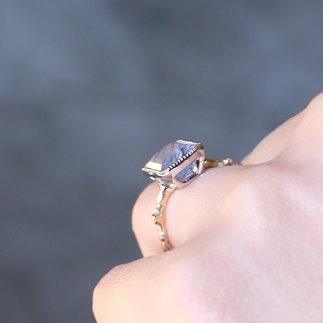 リング腕部分をK18イエローゴールドのコンビカラーで制作しています。