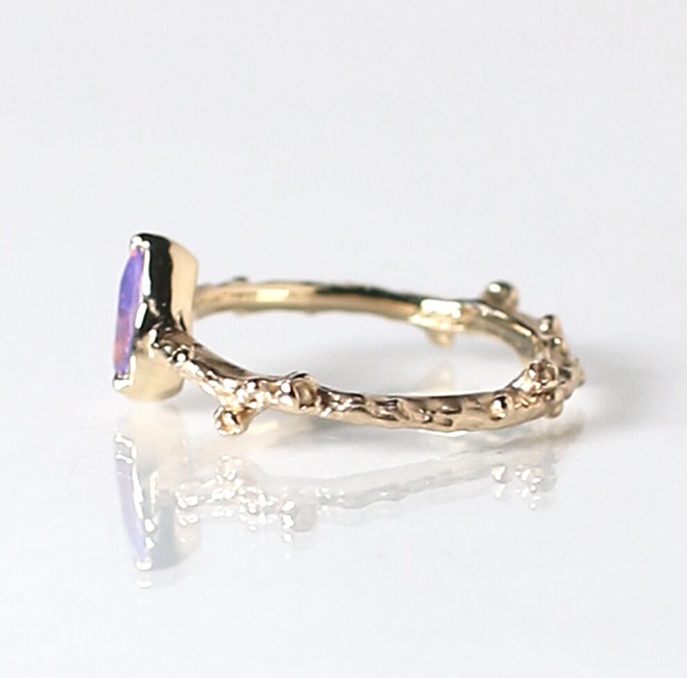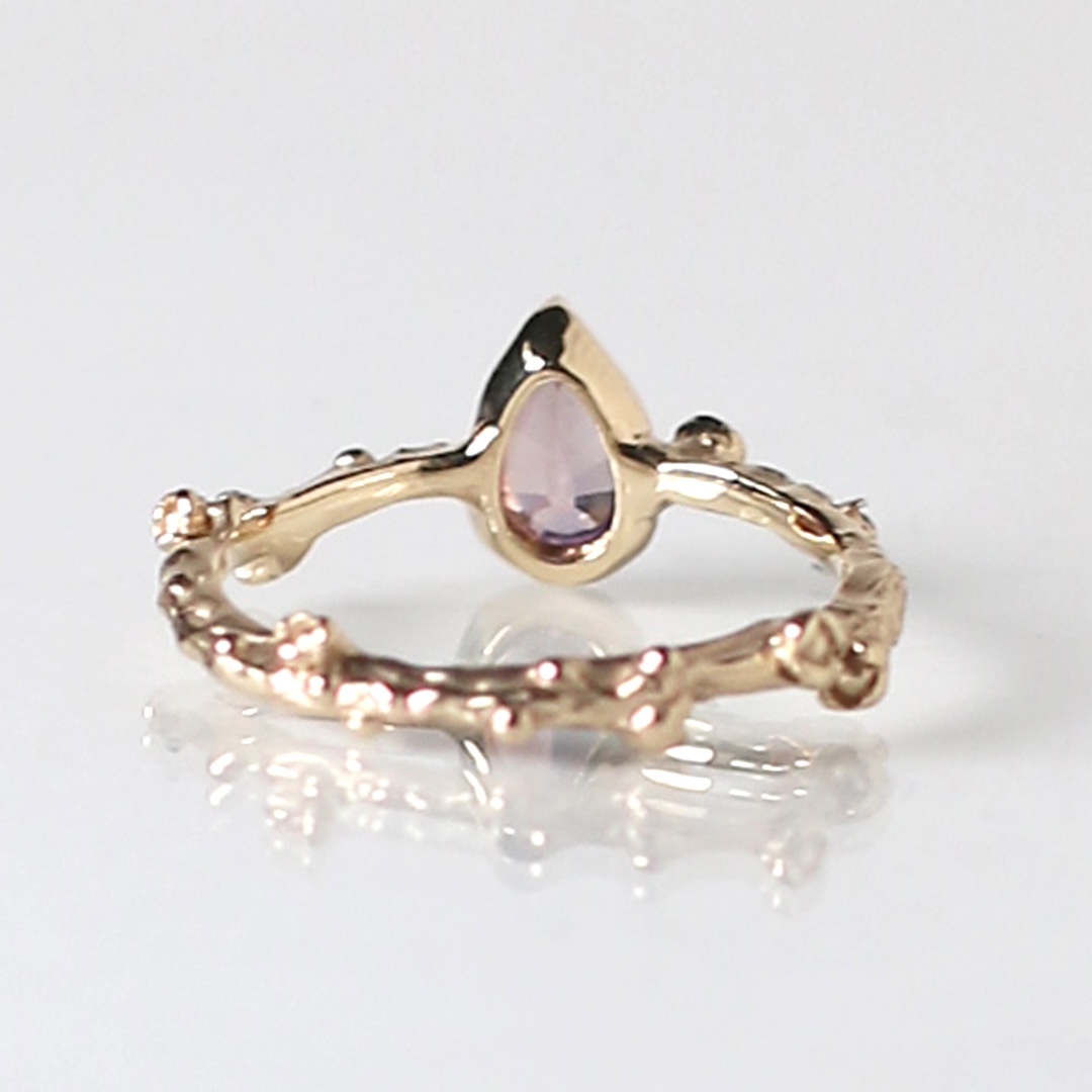 リングの腕部分は植物デザインで、