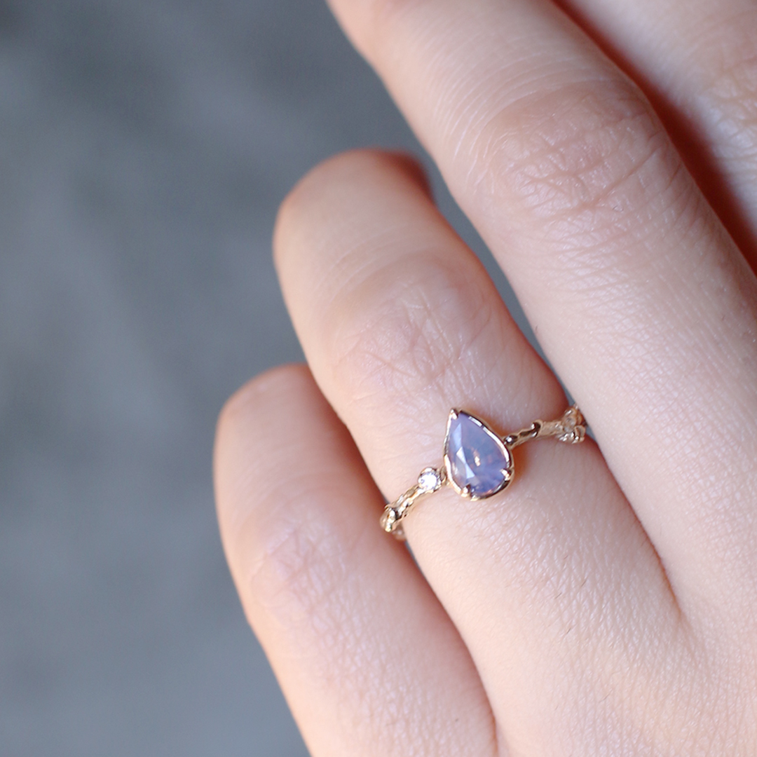 想像させる石を1つずつ集めてリングに仕立てています。