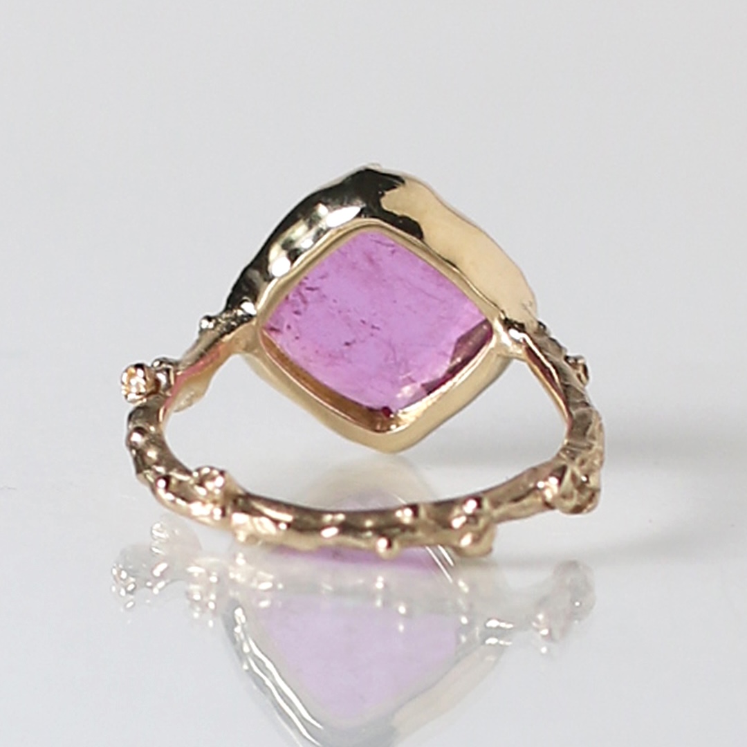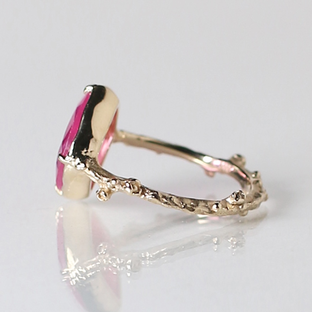 リングの腕部分は植物デザインで、