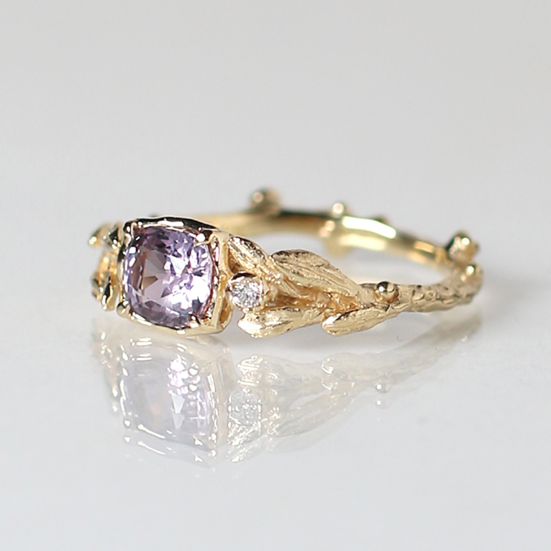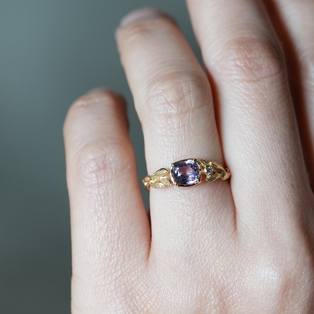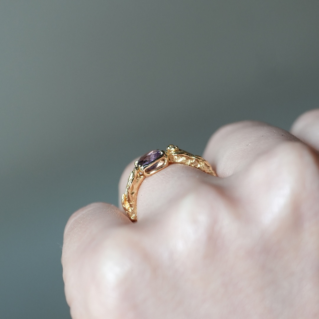 輝きの良いパープルスピネルをK18YGで仕立てました。