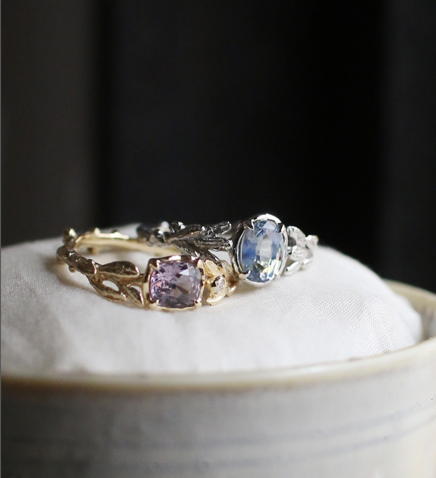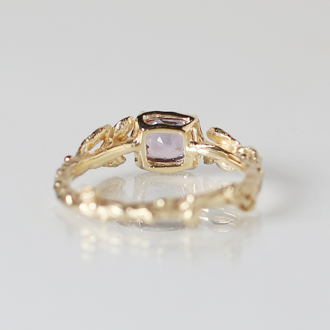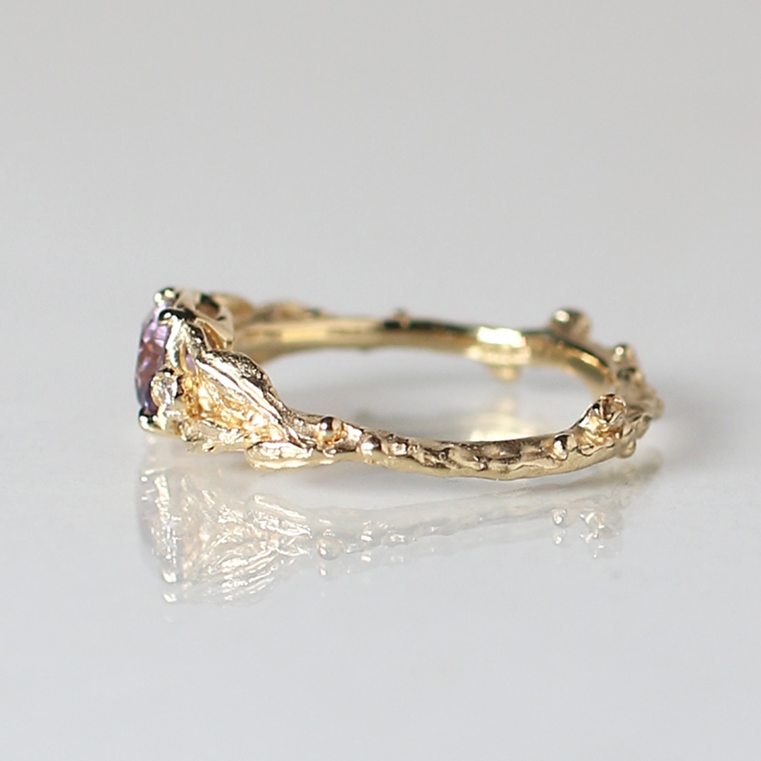 リングの腕部分は植物デザインで、